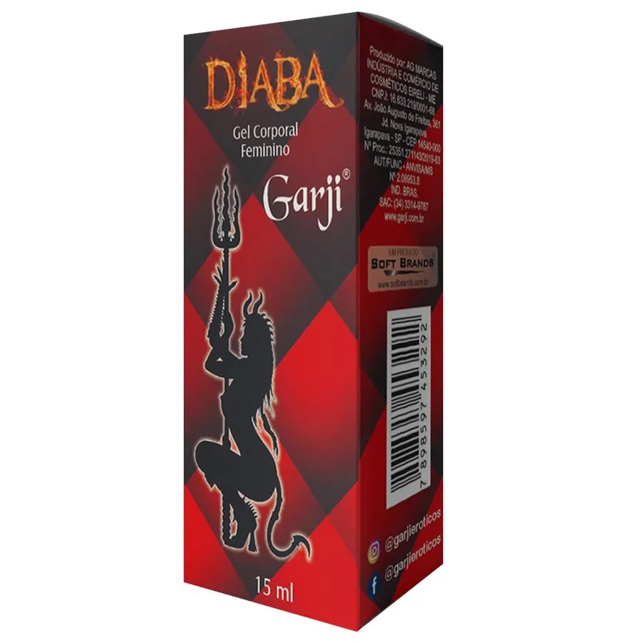 Gel de massagem corporal feminina Diaba da Garji, 15ml. Fórmula exclusiva para estimular a circulação e o prazer feminino durante a massagem. Proporciona sensação de aquecimento e relaxamento, ideal para momentos íntimos e sensuais.